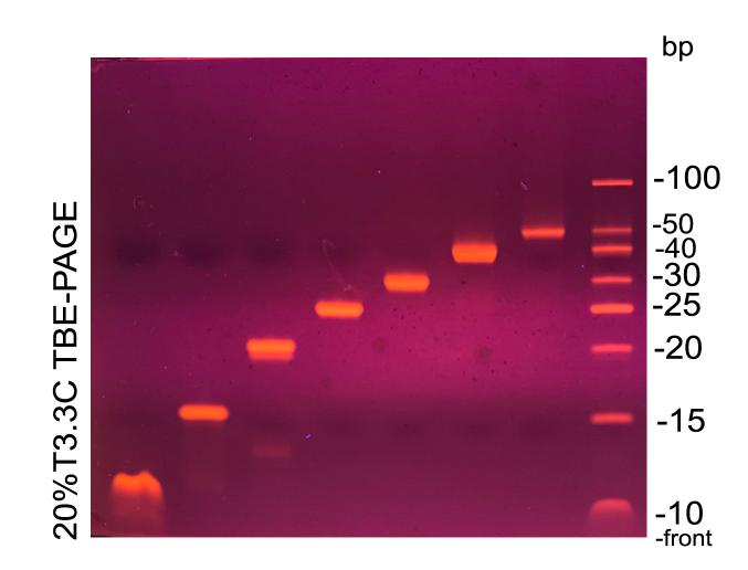 本產(chǎn)品為雙鏈DNA Marker,適用于非變性的PAGE電泳和瓊脂糖凝膠電泳,不適用于尿素PAGE電泳。由于片段很小,不建議用瓊脂糖凝膠電泳分離。