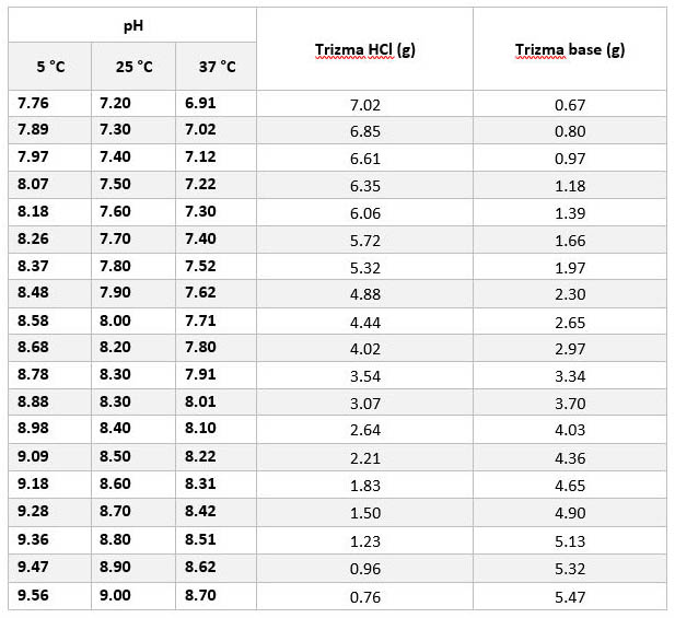 各種與Tris相關(guān)緩沖液的配制方法: