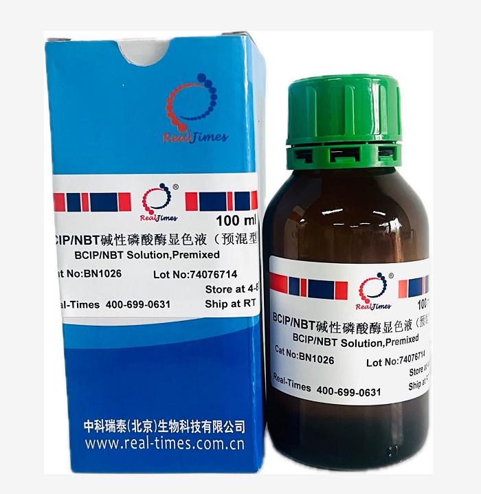 現(xiàn)配現(xiàn)用:BCIP 和 NBT 通常為粉末狀(需 - 20℃避光保存),使用前用二甲基甲酰胺(DMF)或水溶解(按說明書比例,如 NBT 50mg/mL、BCIP 50mg/mL),配制成母液后立即稀釋到緩沖液中(工作液需當天使用);長期放置會導致底物氧化,出現(xiàn)預沉淀。
