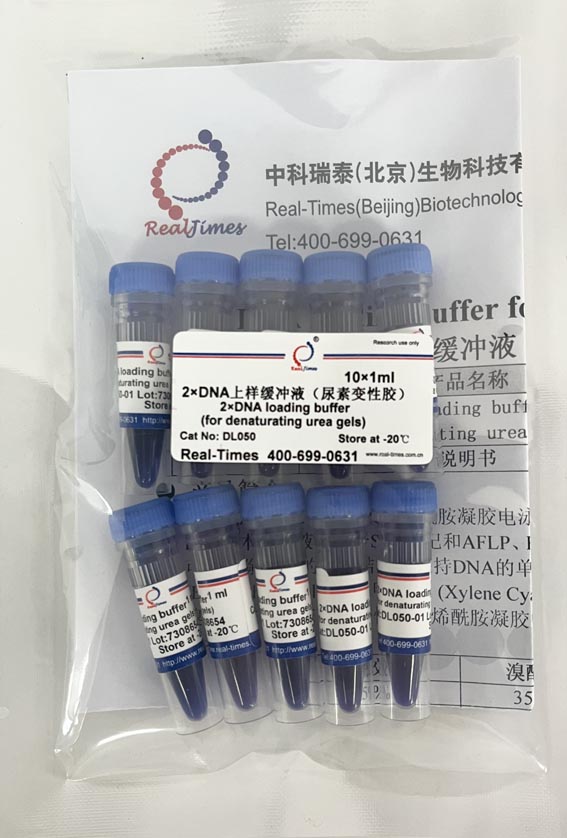 本制品是尿素變性聚丙烯酰胺凝膠電泳時(shí)使用的上樣緩沖液,適用于分離短的單鏈DNA。本緩沖液常用于SSR標(biāo)記和AFLP、RFLP等基因分型檢測(cè)。本制品中含有甲酰胺,可以解除DNA的二級(jí)結(jié)構(gòu),保持DNA的單鏈構(gòu)型;另外,本制品中還含有溴酚藍(lán)(Bromophenol Blue)、二甲苯菁 (Xylene Cyanol