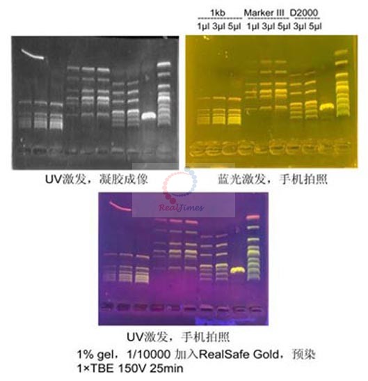 1 瓊脂糖凝膠RealSafe Gold染色: