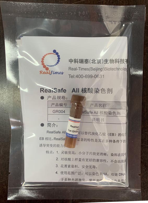 RealSafe All是一種可以替代溴化乙錠(EB)的紅色熒光核酸染色劑,與GelRed是類似產(chǎn)品。與SYBR或EB相比,RealSafe All最顯著的特性是其在多種條件下的高靈敏性和穩(wěn)定性。另外相對(duì)EB或SYBR,RealSafe Red誘導(dǎo)突變的能力極低。