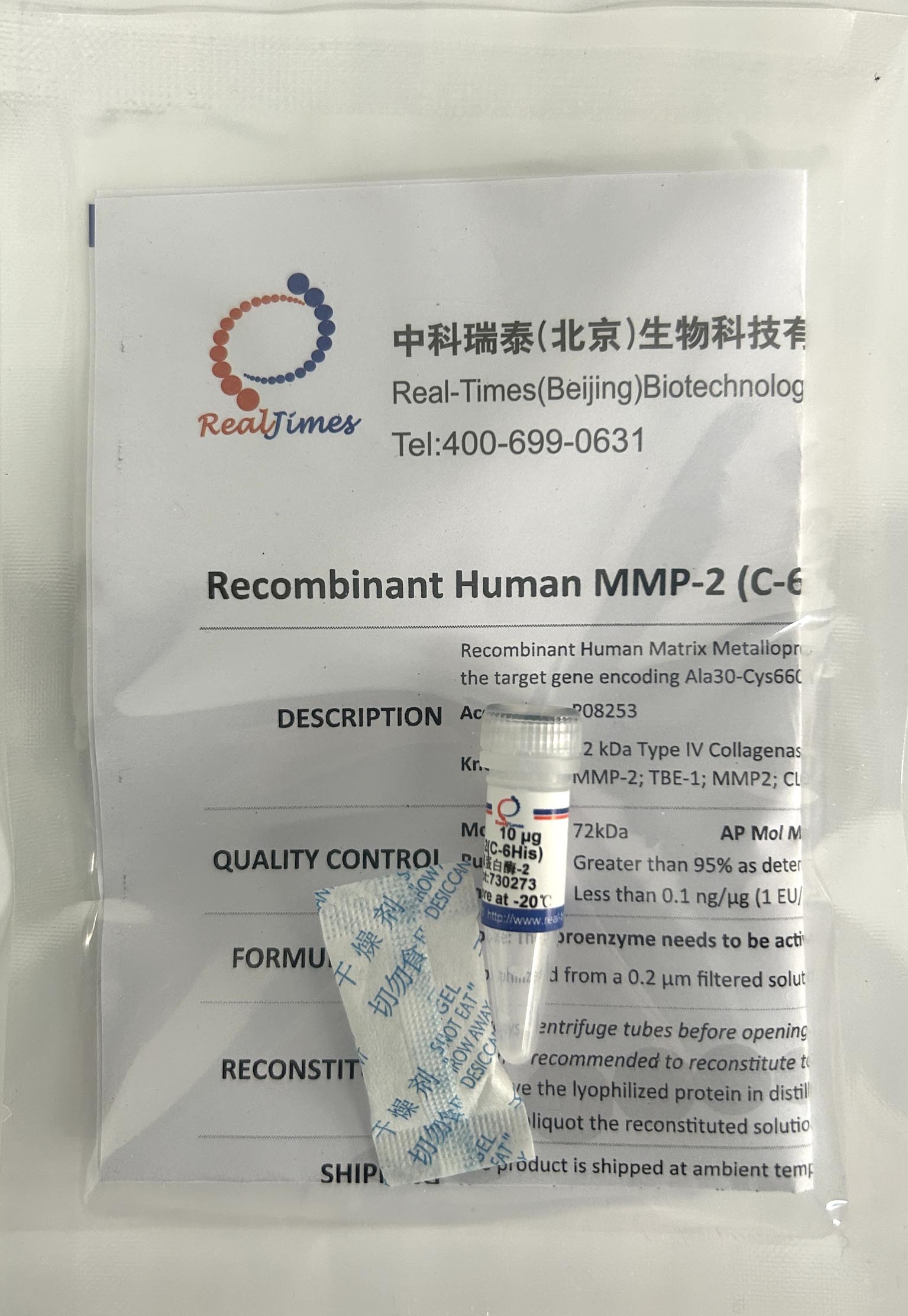 Recombinant Human Matrix Metalloproteinase-2 is produced by our Mammalian expression system and the target gene encoding Ala30-Cys660 is expressed with a 6His tag at the C-terminus.