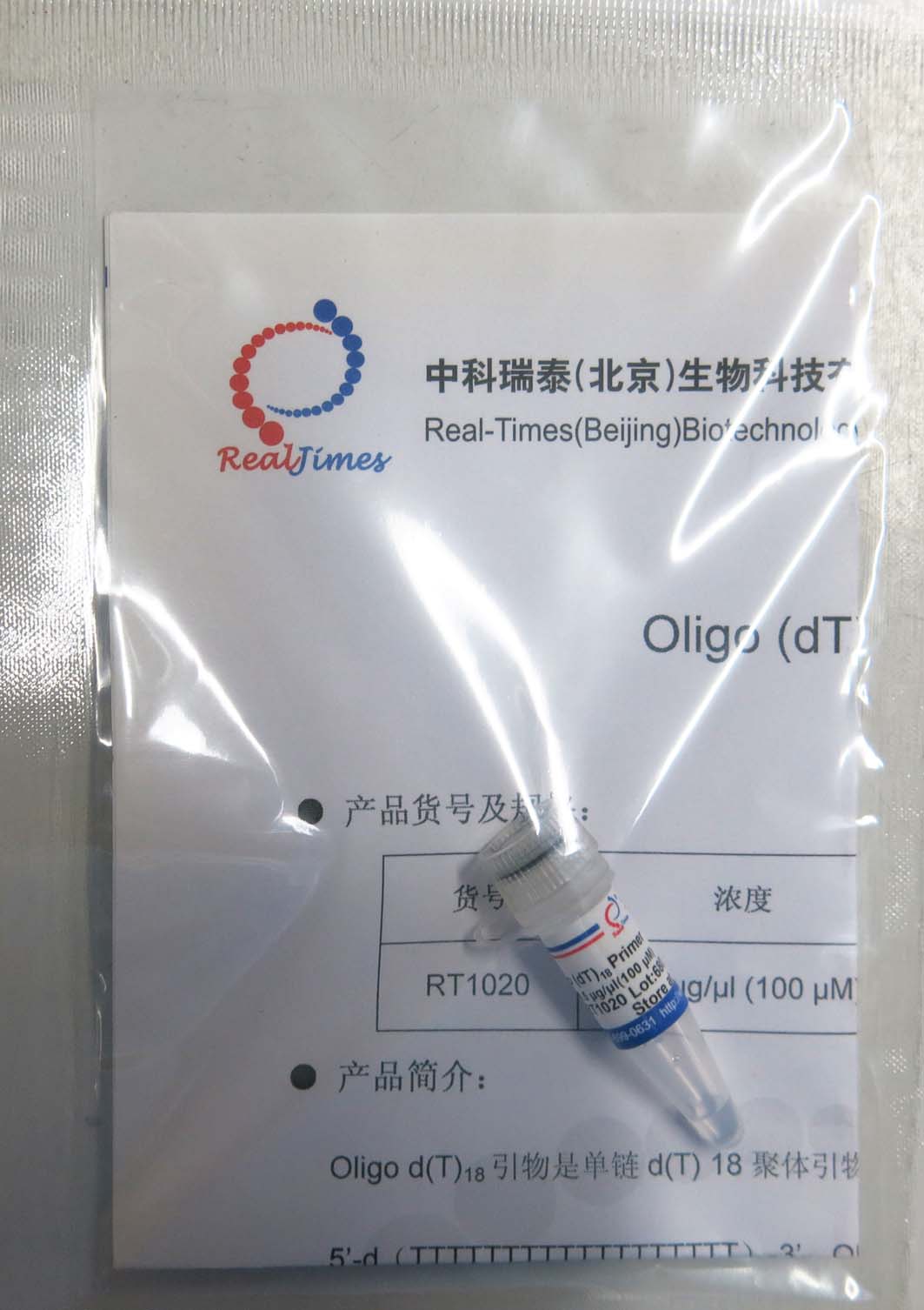 Oligo d(T)18引物是單鏈d(T) 18聚體引物,5’和3’均為羥基末端。