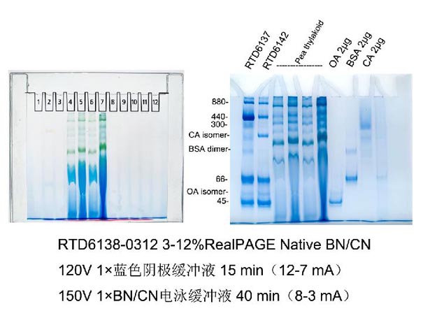 Product: RTD6130 非變性PAGE凝膠制備及電泳試劑盒; PL111 5×非變性非還原蛋白上樣緩沖液; RTD6142 高分子量非變性電泳蛋白質Marker II(45-669 kD)
