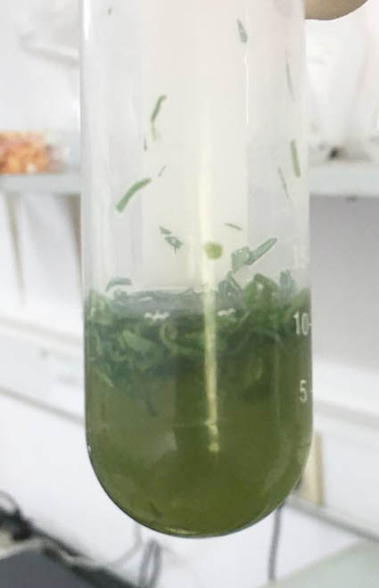 注:酶解時間與葉片種類,葉片生長狀態(tài)有關,請根據(jù)實驗需要適當調(diào)整酶解時間。3小時為擬南芥葉片推薦的酶解時間。如條件允許,可以使用微型真空泵常溫避光條件下抽真空30 min,以使酶溶液更好地進入細胞間隙。酶溶液變?yōu)榫G色表明有原生質(zhì)體已經(jīng)有分離,溶液為濃綠色表明原生質(zhì)體已經(jīng)大量分離。擬南芥原生質(zhì)體大小約為30-50 μm,顯微鏡鏡檢后確定是否分離。葉片原生質(zhì)體細胞顯微鏡下為綠色圓球狀,葉綠體分散在整個細胞內(nèi),說明狀態(tài)較好;如呈現(xiàn)不規(guī)則形狀,說明原生質(zhì)