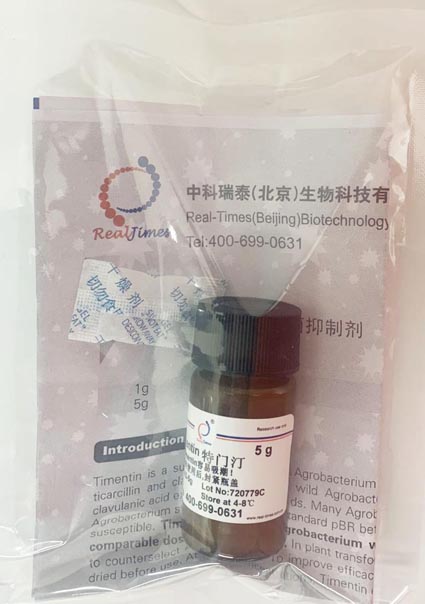 Potassium),按有效酸計,替卡西林鈉與克拉維酸鉀的配比為15:1,替卡西林是青霉素類殺菌試劑,而克拉維酸則是一種不可逆性高效β-內(nèi)酰胺酶抑制劑。多種革蘭氏陽性菌(G+)和陰性菌(G-)都能產(chǎn)生β-內(nèi)酰胺酶,這類酶能在青霉素作用于病原體之前將其破壞??死S酸通過阻斷β-內(nèi)酰胺酶破壞細菌的防御屏障,恢復(fù)替卡西林敏感性??死S酸鉀單獨抗菌作用甚微,但與替卡西林配置后使本品成為具有廣譜殺菌作用的抗生素,適用于對廣泛的細菌感染性疾病的經(jīng)驗治療。在科研中常用于抑制農(nóng)桿菌生長,特別在胚性愈傷組織再生系統(tǒng)中,能達到很好的抑菌和再生效果。