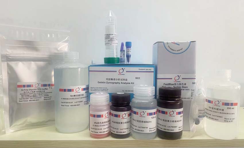 本試劑盒提供明膠酶譜分析的全套試劑,試劑盒可進(jìn)行50 次標(biāo)準(zhǔn)膠(8×10 cm)檢測(cè),如果小膠加樣孔為10~15個(gè),則總計(jì)可檢測(cè)500~750 個(gè)樣品。試劑盒配套有膠原酶陽(yáng)性對(duì)照,可以有效分解明膠,方便判斷凝膠及電泳體系是否有問(wèn)題。