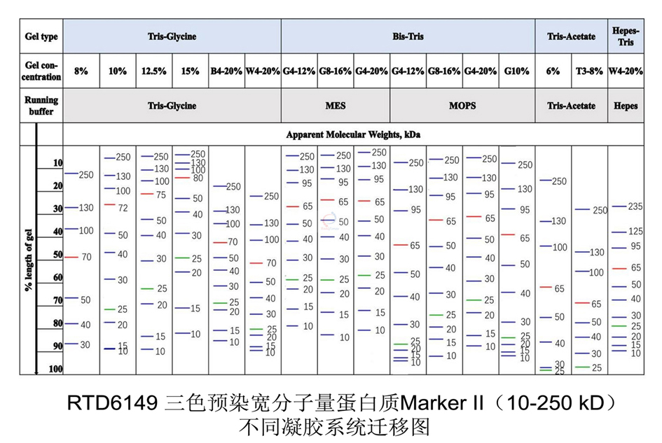 Marker: RTD6149 三色預(yù)染寬分子量蛋白質(zhì)Marker II(10-250