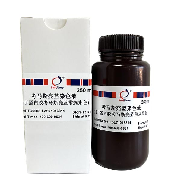 考馬斯亮藍(lán)染色液(Commassie Blue Staining Solution)是以考馬斯亮藍(lán)G-250為主要成分,采用新配方配置而成??捎糜赟DS-PAGE或非變性PAGE膠(native