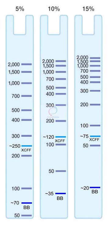 注:最佳上樣量須通過實驗來確定,樣品過量較易導致條帶拖尾。